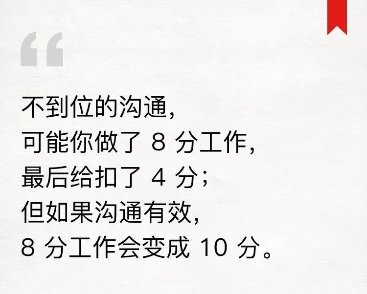 任何事情必然有沟通的部分。我常常说,不到位的沟通,可能你做了8分工作,最后给扣了4分;但如果沟通有效,7分工作变成10分。