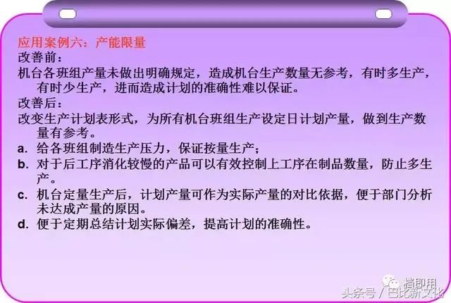 ● 根据预排产计划表,确认未来产品瓶颈,重点关注瓶颈工序,按照“人、机、料、法”提前采取相关预防措施。