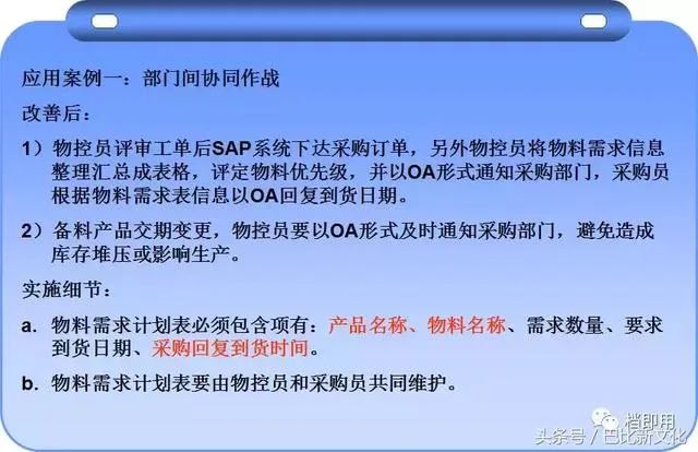 ● 切忌生产物料需求逾越PMC直接与采购部索要,避免计划失控。