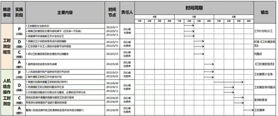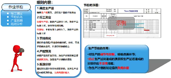 ③人员作业工作分析及作业标准化等各方面动因会造成节拍变更,需要对节拍进行重新测定,并对比变更前后的标准工时,以此来评判节拍优化的效果。
