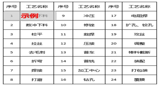 1>基础工艺划分:将现场所涉及到的所有工艺进行统计。