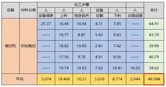 裁切的标准工时