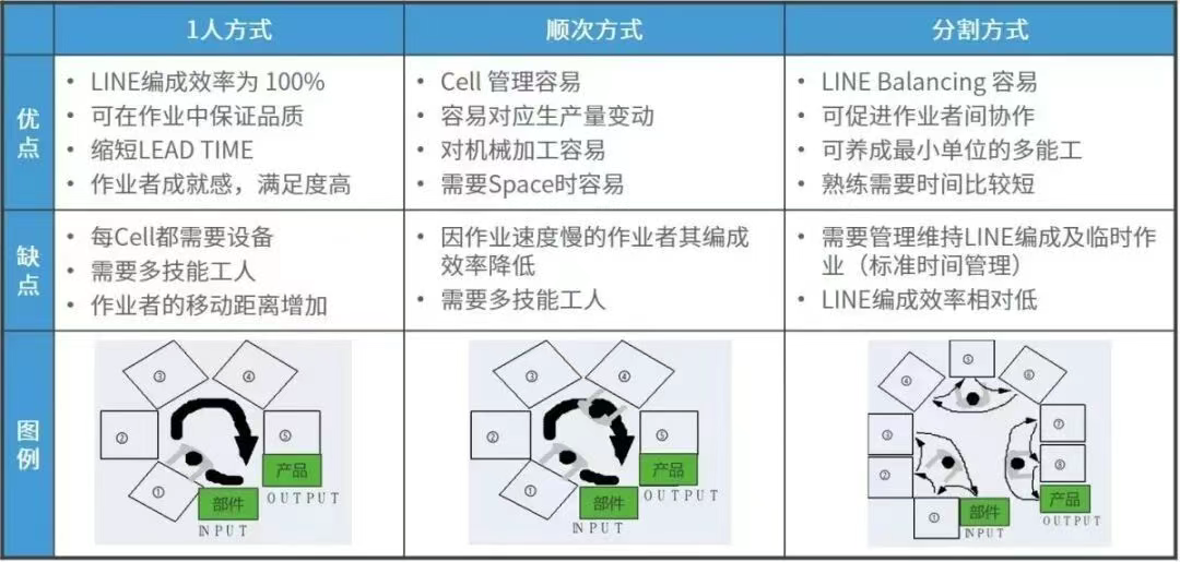 - 产品不固定、Cell工位专业化程度低,可以灵活转换生产其他产品;