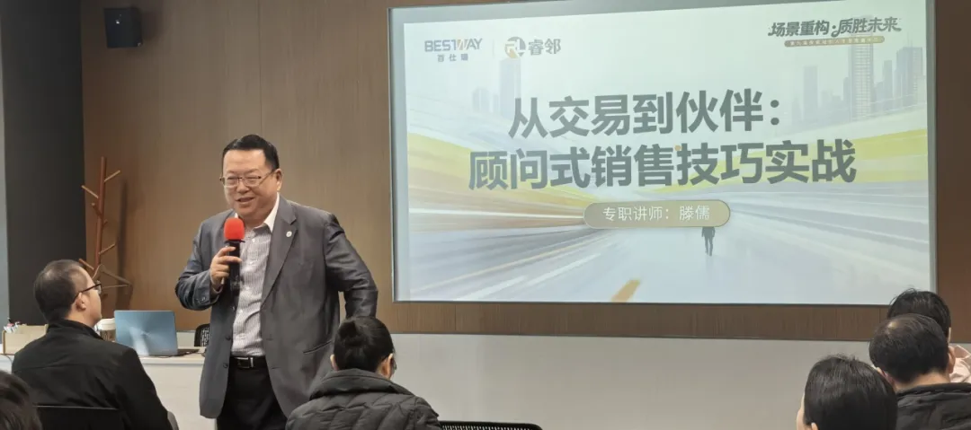 拥有20年企业营销管理实战积淀的滕儒老师,为学员带来《从交易到伙伴:顾问式销售技巧深度实战》专题课程。他基于多年一线实战与行业观察,不仅融合前沿销售方法论,更通过场景演练、真实案例复盘等互动环节,帮助学员掌握挖掘客户深层需求、构建持久信任关系的核心能力,真正实现从“销售执行者”到“价值合作伙伴”的转变。
